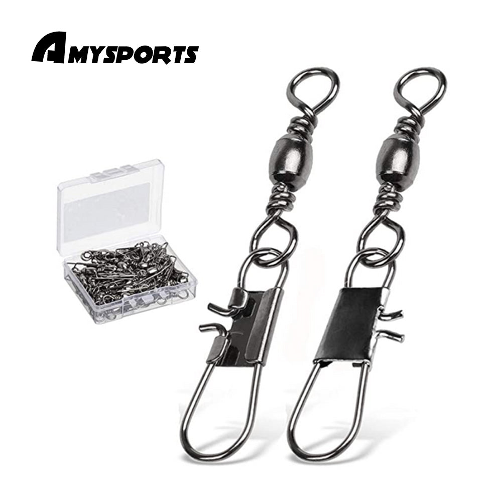 AMYSPORTS 50pcs/Pack Fishing Ball Bearing Swivels with Interlock Snap (Black)